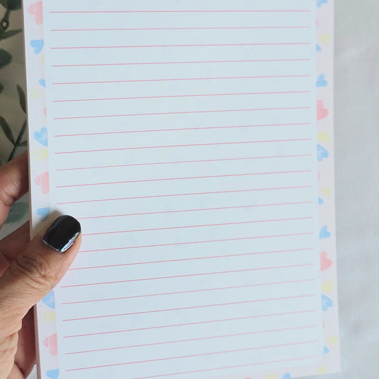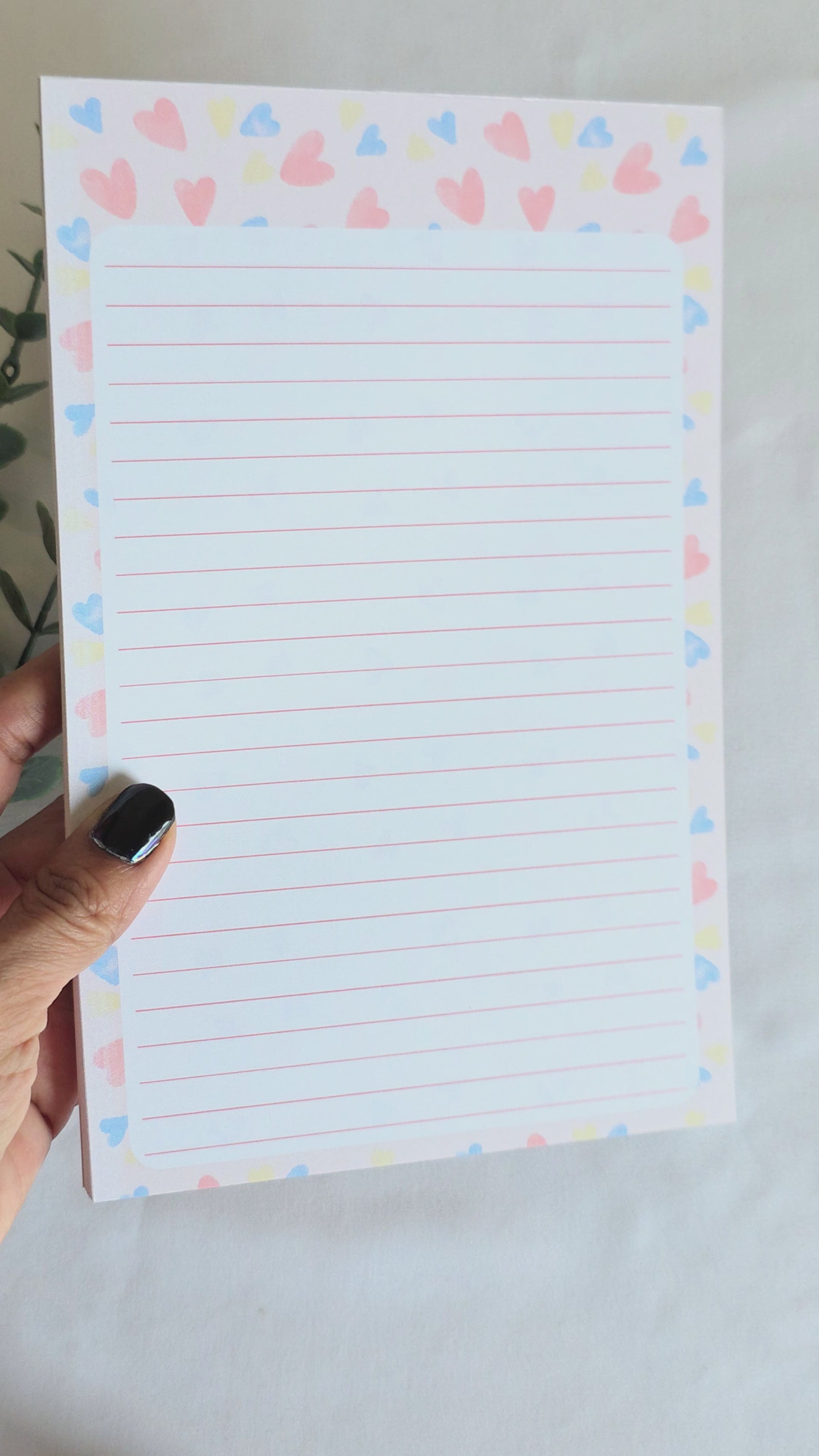 Heart Lined Notepad – 50 Tear Away Pages | Pastel Stationery Pad