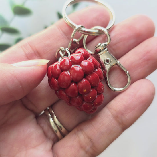 Red Raspberry Polymer Clay Keychain | Handmade Fruit Charm | Cute Bag & Key Accessory