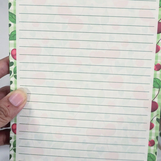 Green Gingham Cherries Notepad | Handmade Tear-Away Notepad