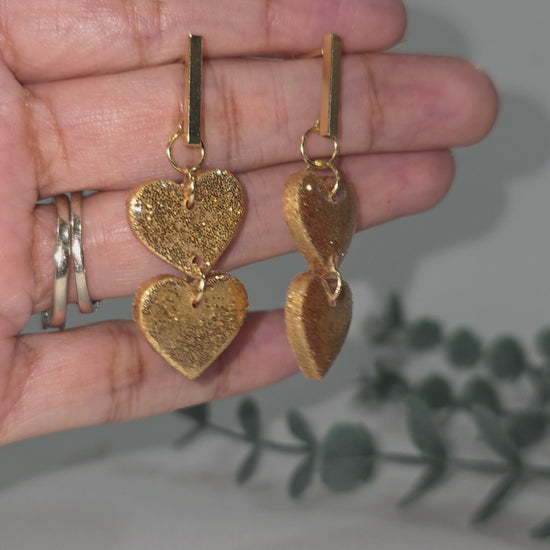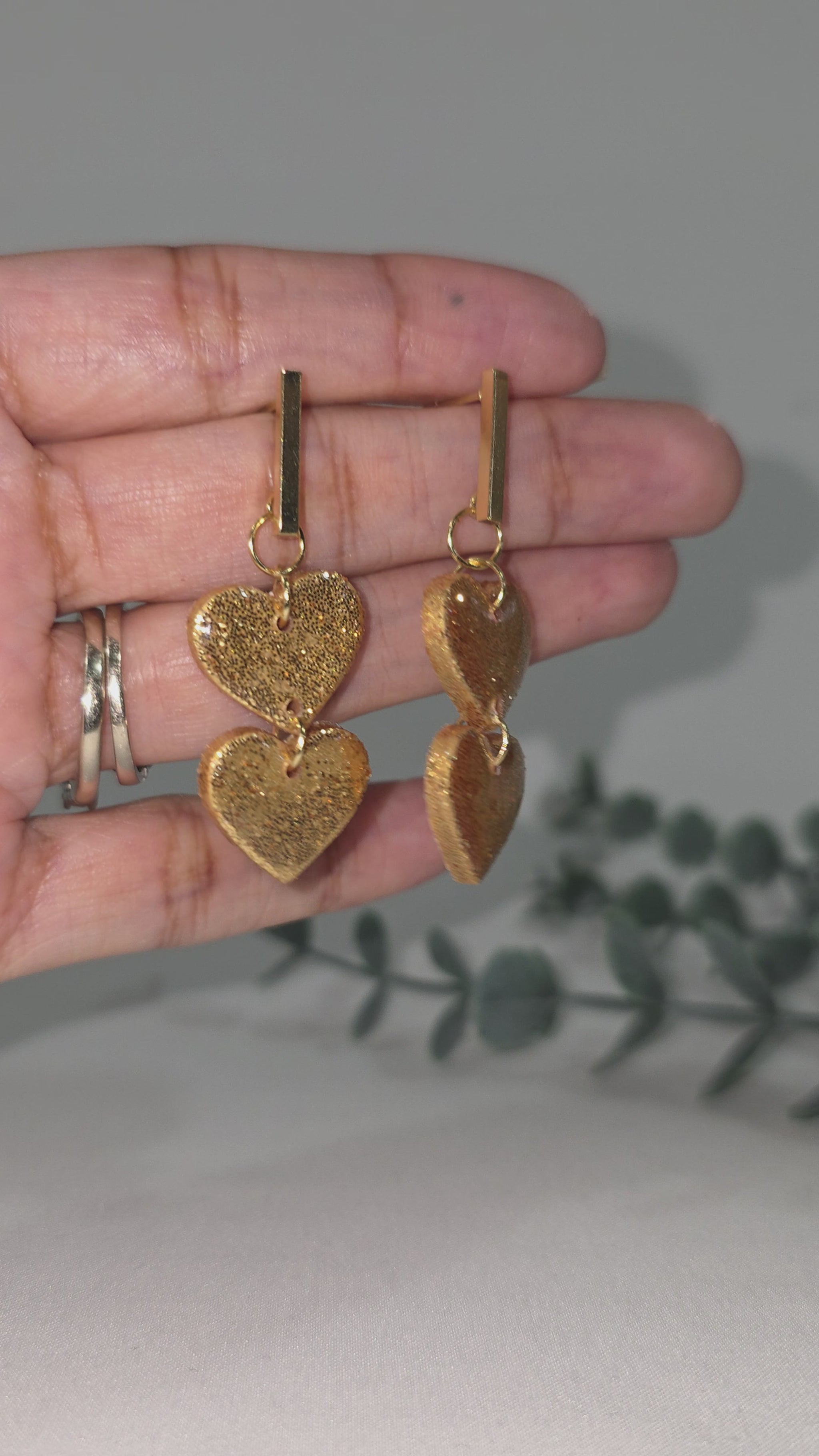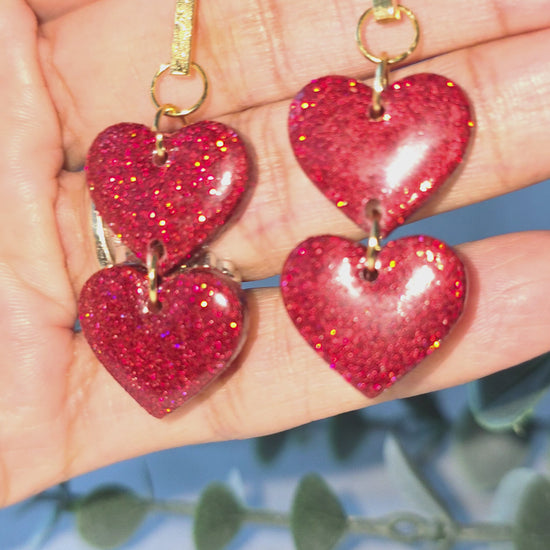 Each earring features two gold glitter hearts linked together for subtle movement and maximum shine. Perfect for date nights, Galentine’s brunches, weddings, or anytime your outfit needs a little romance.