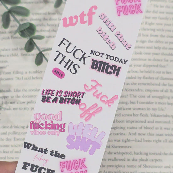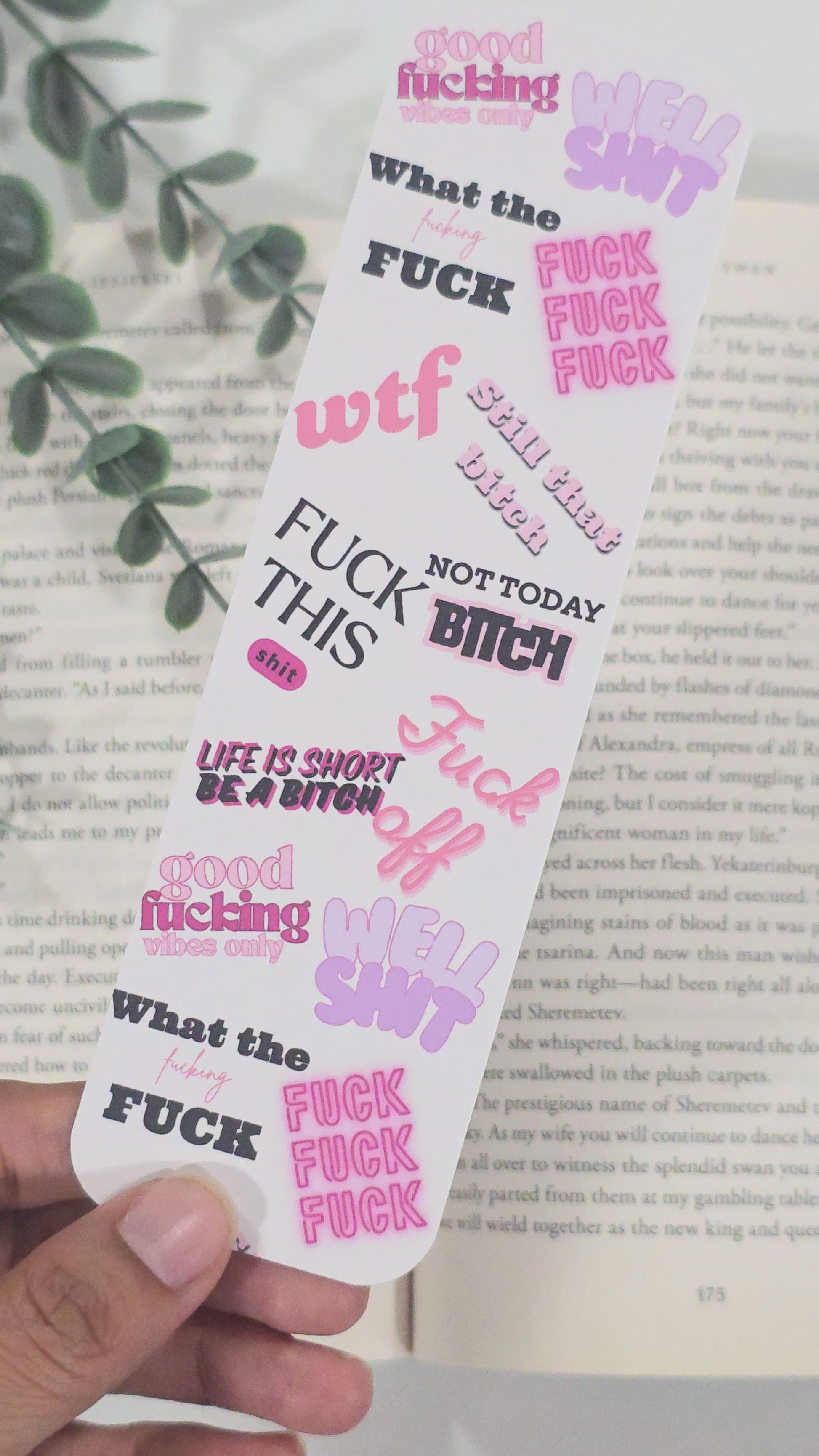 Not your average bookmark, this one comes with attitude. Featuring cheeky phrases like “WTF,” “fuck off,” and “well shit,” this pink bookmark adds humor to your book stack.