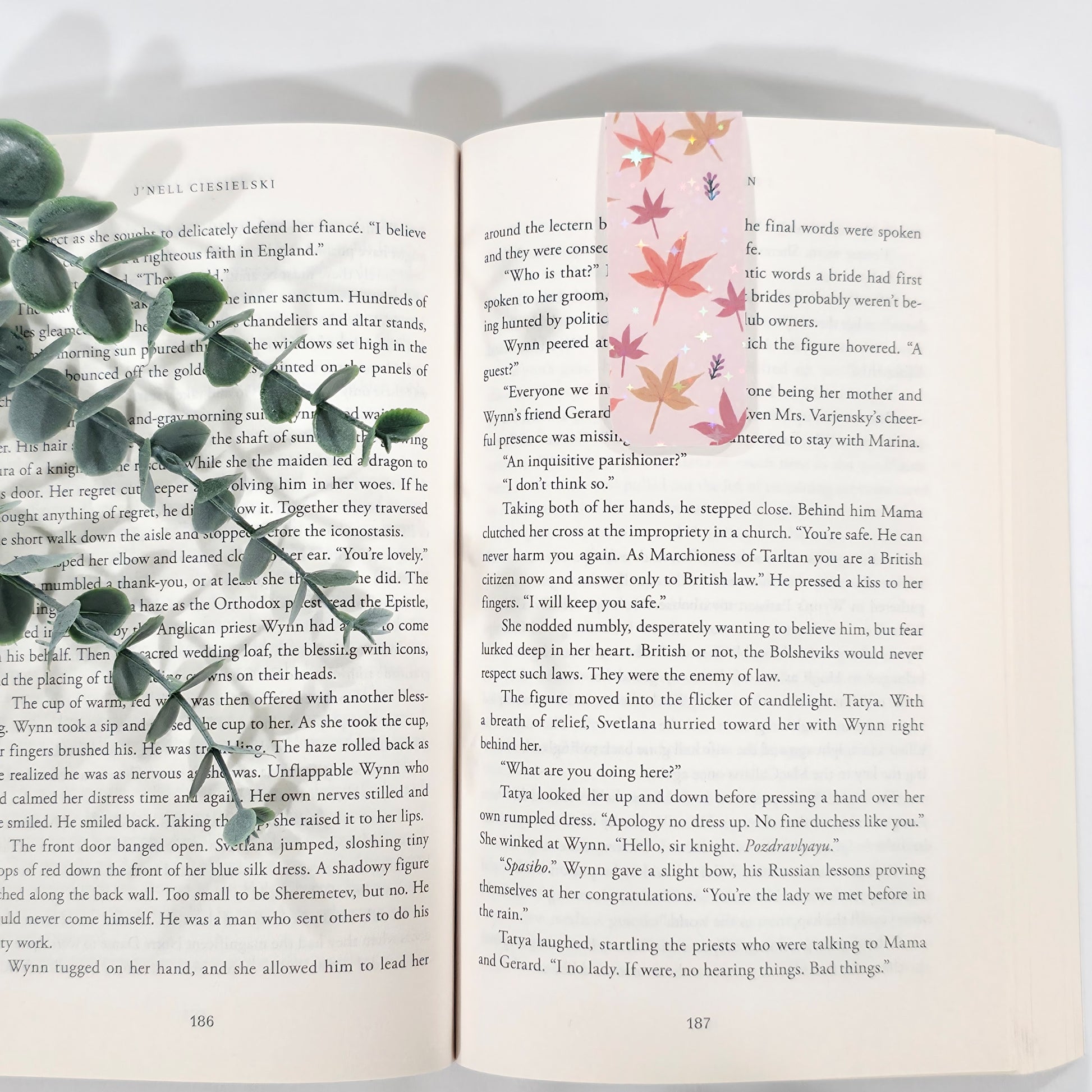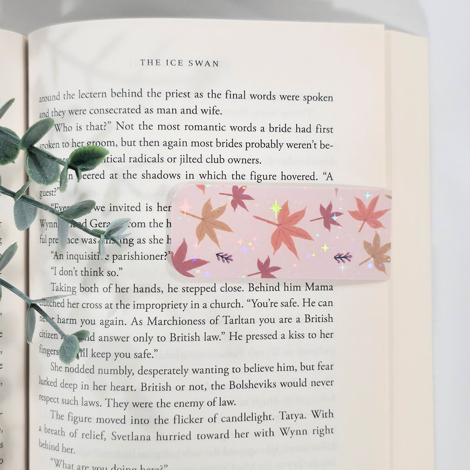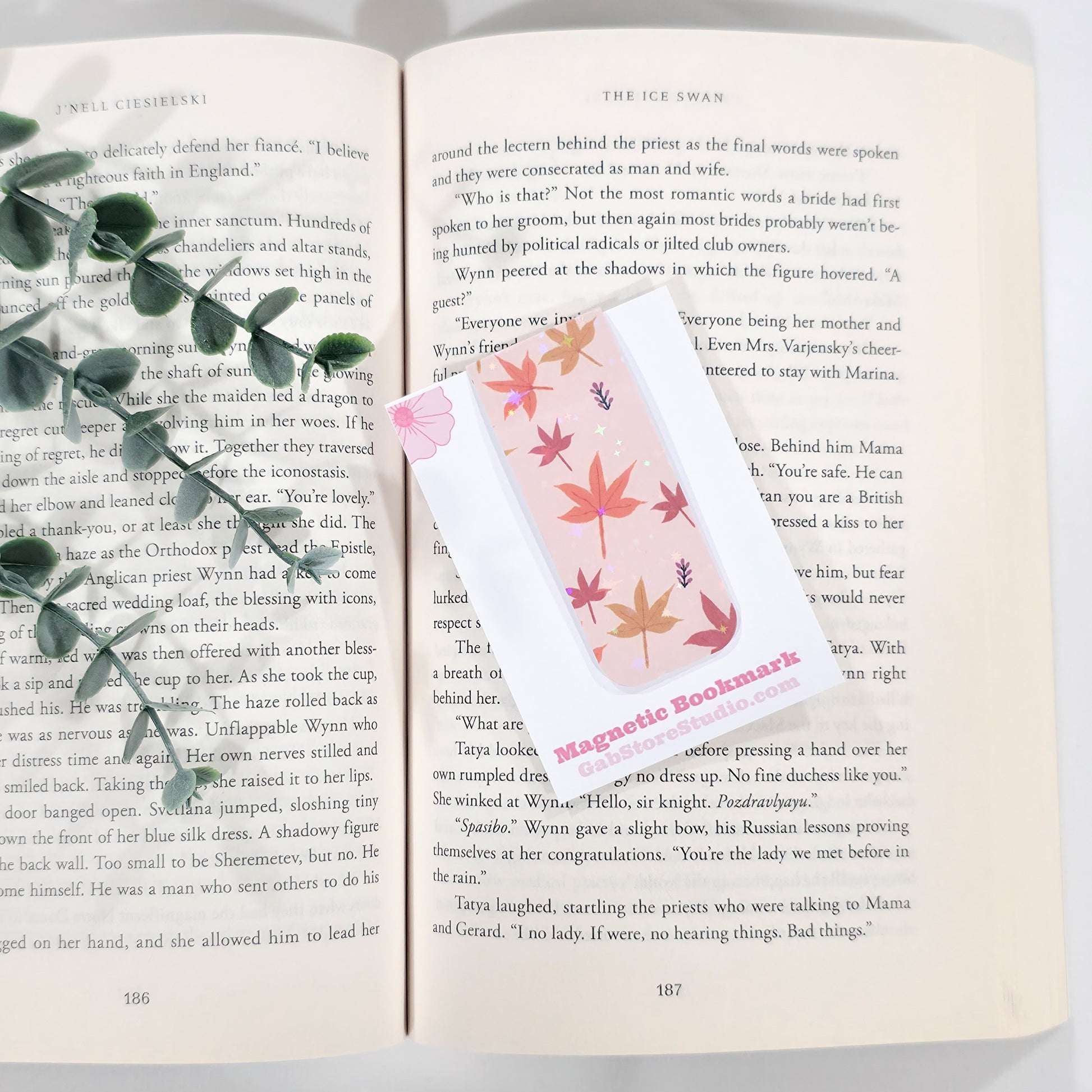 Bring cozy fall vibes to your reading with this fall leaves magnetic bookmark. Featuring autumn leaves and a sparkle holographic finish, this handmade bookmark makes a seasonal gift for bookworms.