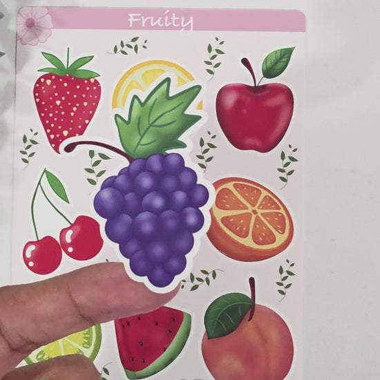 This Fruit Themed Sticker Sheet is packed with cute, hand drawn fruit designs that brighten up any project. Printed in my home studio, each 4.5 x 6.5 inch sheet comes in either glossy or matte finish, ready to use for planners, scrapbooks, journals, and other creative crafts.