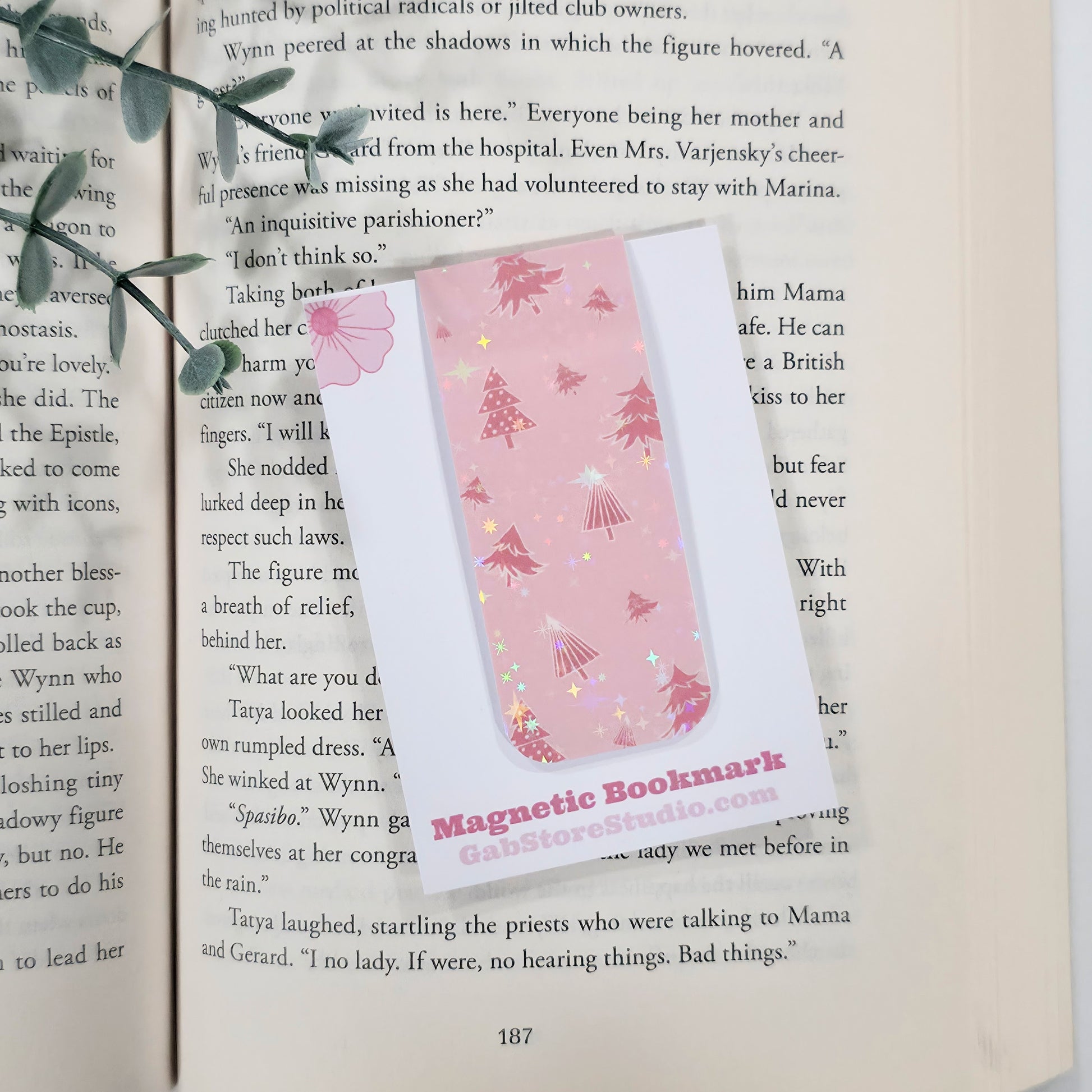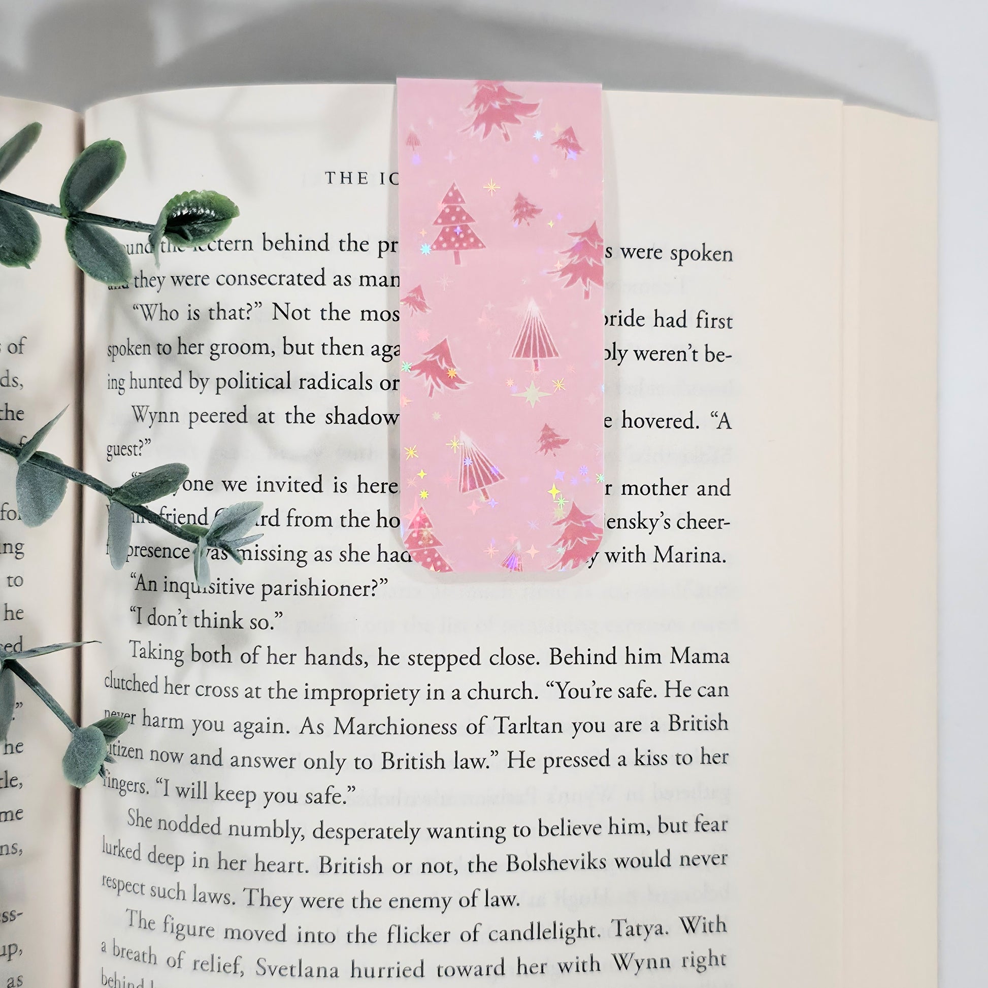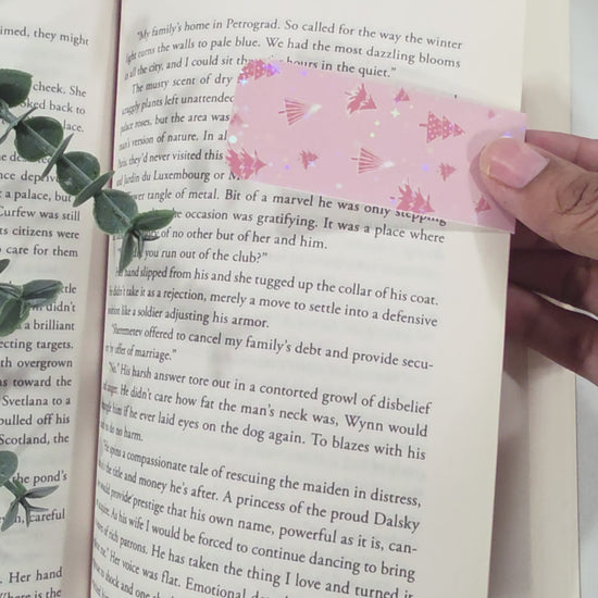 This pink Christmas tree magnetic bookmark adds holiday magic to your reading routine. Handmade with a holographic sparkle finish, it’s as festive as it is functional.