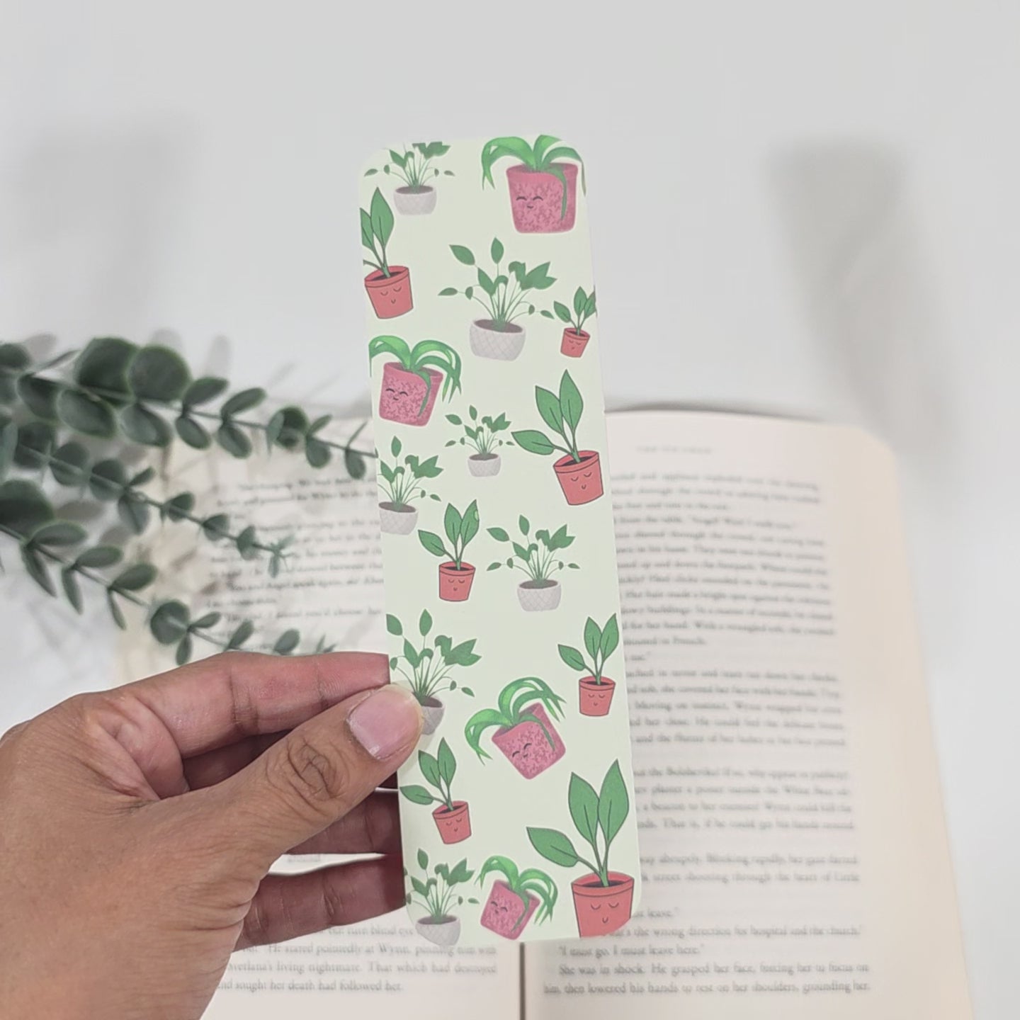 Bring a little greenery into your reading with this potted plants bookmark. Each one is hand-illustrated, printed, and cut by me for a fresh handmade touch.
