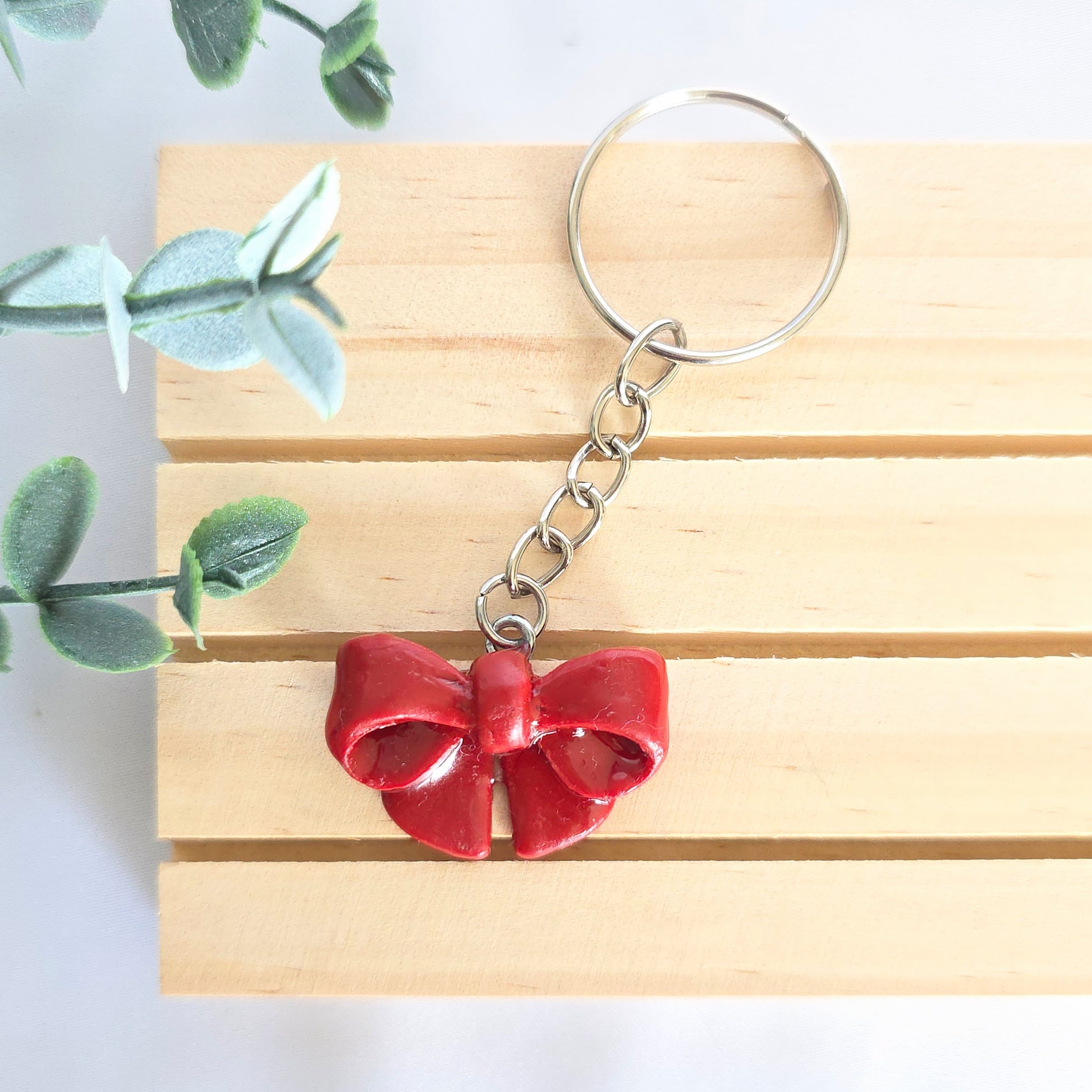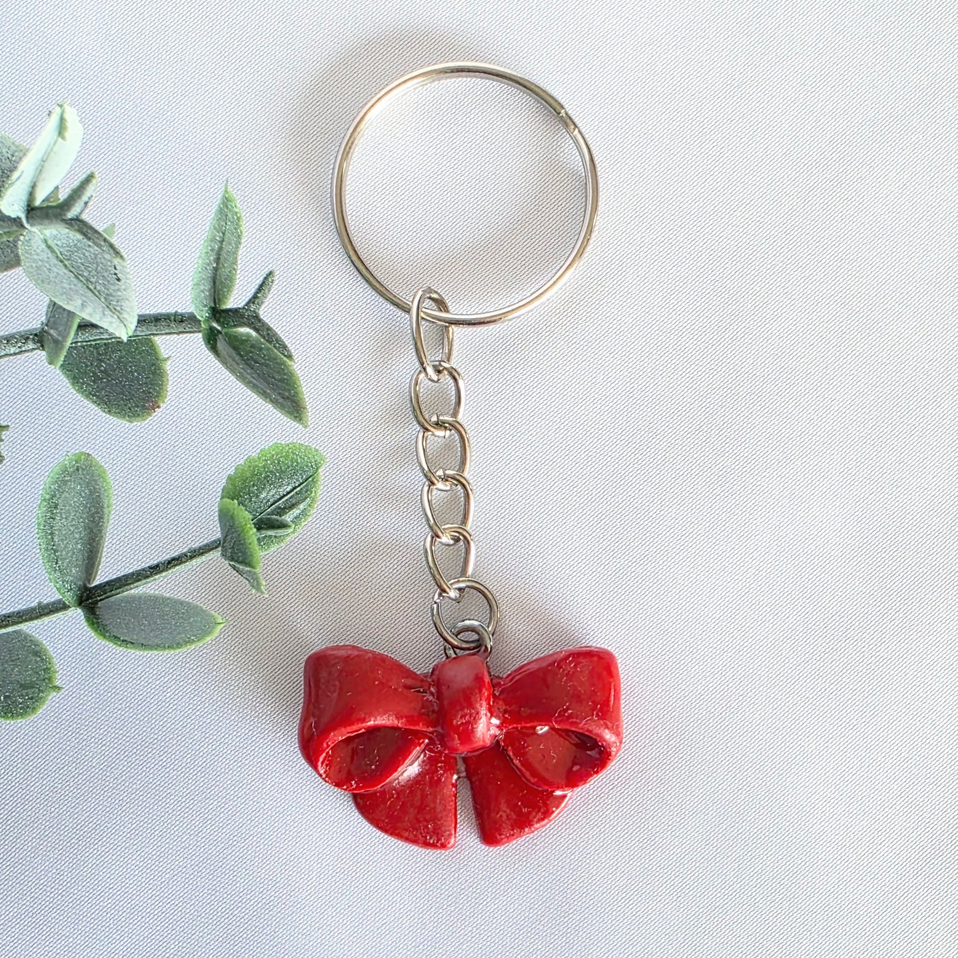 Handmade Red Bow Polymer Clay Keychain – Glazed Mini Charm Gift