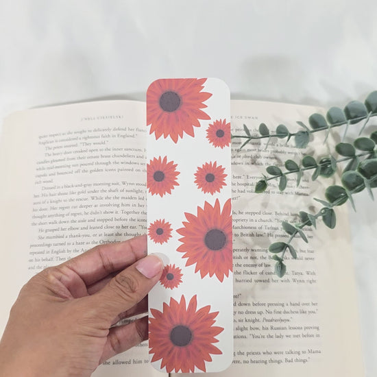 This handmade sunflower bookmark brings a bold floral accent to your books. Printed on sturdy 120lb cardstock with rounded corners.